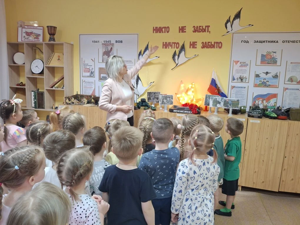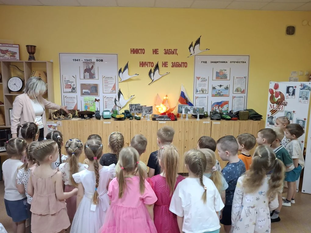 Сегодня наши маленькие патриоты из групп «Попрыгунчики» и «Колокольчики» совершили увлекательную экскурсию в музей «Никто не забыт, ничто не забыто».