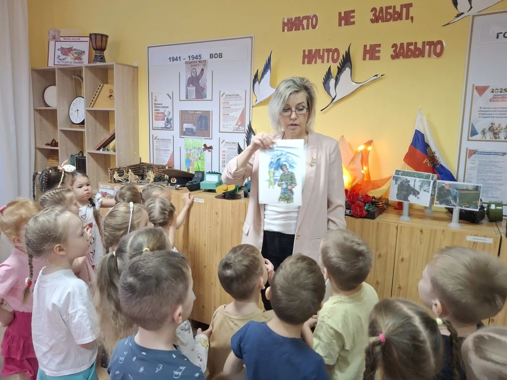 Во время посещения музея Алёна Владимировна познакомила ребят с историческими артефактами и письмами времён Великой Отечественной войны. Особенно впечатлил макет «Блиндаж», который позволил детям наглядно представить, как жили и работали солдаты на передовой.