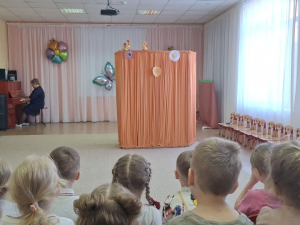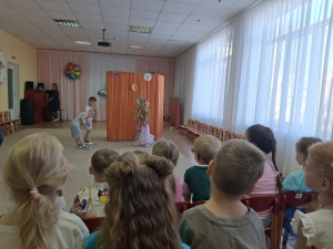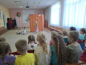 Малыши с замиранием сердца следили за приключениями кукол, вслушиваясь каждому слову сказочного сюжета.