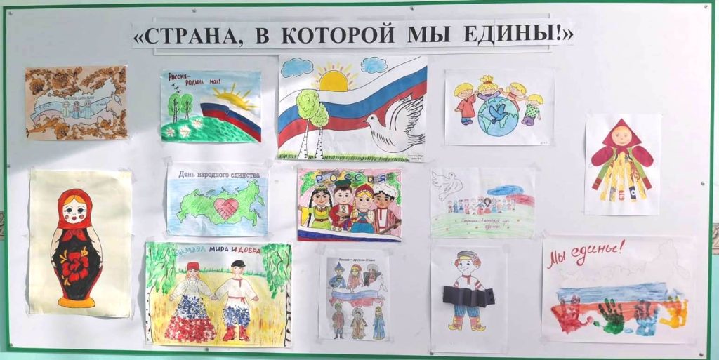 Ребята создали много ярких и красочных рисунков, на которых изобразили символы праздника, дружбу народов и согласие. Затем все работы объединили в выставку «Страна, в которой мы едины!», чтобы другие дети и взрослые могли увидеть творчество юных художников и узнать больше о празднике.